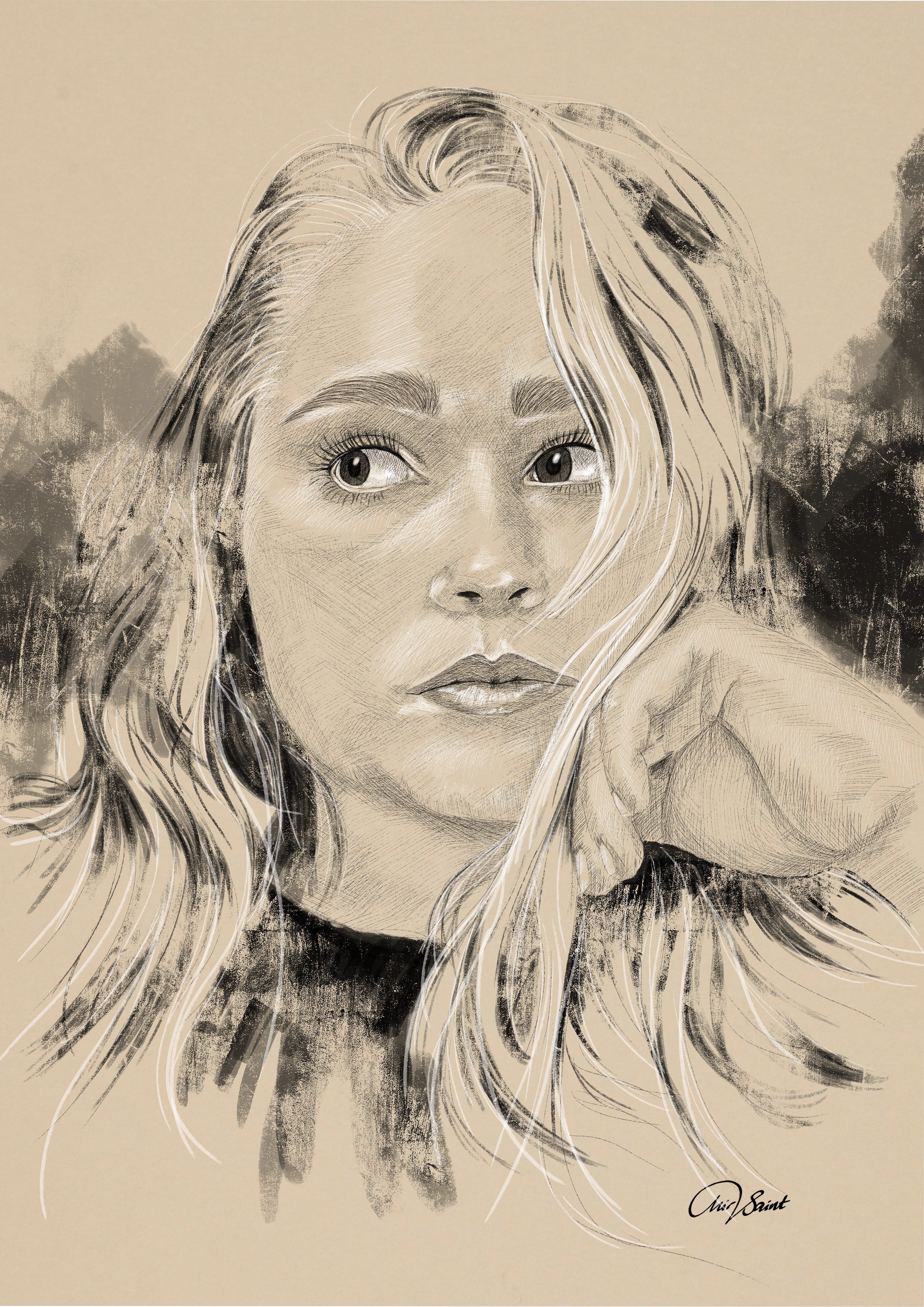 Emily Blunt, digital tegning.